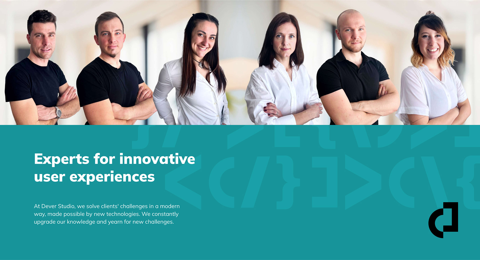 Dopracowaliśmy nasze pomysły dzięki informacjom zwrotnym i współpracy z Dever, a następnie stworzyliśmy projekt logo, które odzwierciedlało ich markę. Logo to litera "D" z nawiasami po obu stronach, symbolizującymi kod tworzący nową rzeczywistość.