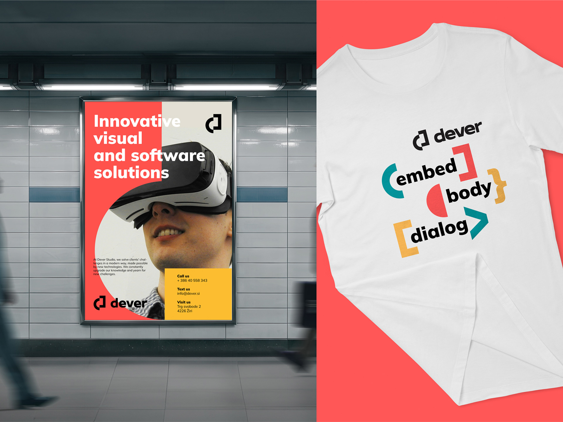 Dever miał innowacyjny i ambitny pomysł na przekształcenie rzeczywistości dzięki wyobraźni. Potrzebowali tożsamości marki, która pokaże ich wiedzę, kreatywność i profesjonalizm. Chcieli tożsamości marki, która wyróżni ich na tle konkurencji, przekaże ich przesłanie i cel oraz przyciągnie docelową grupę odbiorców: właścicieli firm, którzy chcą wykorzystać technologie immersyjne do wzbogacenia swoich produktów i usług. Potrzebowali również tożsamości marki, która będzie elastyczna i dostosowalna do różnych mediów i formatów, takich jak ilustracje, projektowanie stron internetowych i materiały promocyjne.