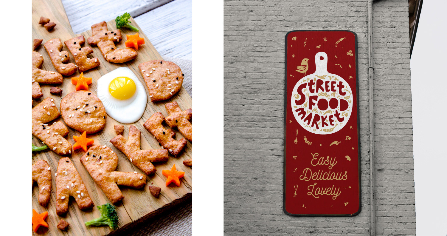 Nasza podróż zaczęła się od piekarnika. Tak, piekarnika! Upiekliśmy ciasteczka, ale nie byle jakie, lecz takie, które zainspirują fundament naszej strategii marki. Nasze indywidualne litery dla Street Food Market były ugniatane i wałkowane niczym ciasto, uchwytując istotę ręcznie przygotowanego, świeżego jedzenia. To nie była tylko typografia; to była typ-piekarnik-grafia, nasączona aromatem świeżo wypiekanych pomysłów.