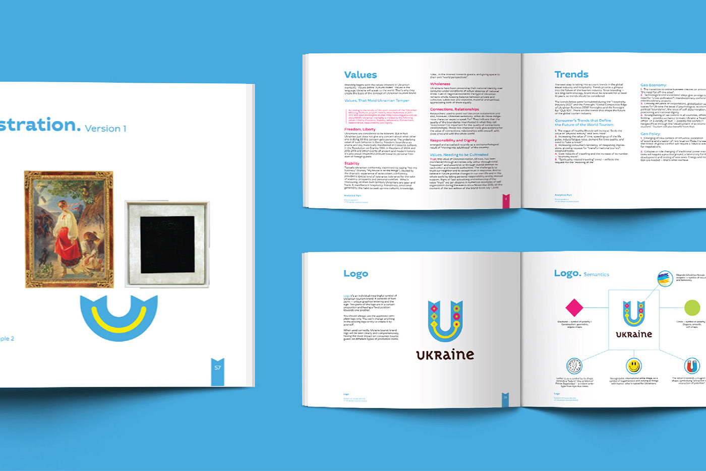 Zadanie było monumentalne: stworzyć tożsamość marki, która rezonuje z unikalnym charakterem Ukrainy i przemawia do globalnej publiczności. Z jej różnorodnymi krajobrazami, bogatą historią i dynamiczną kulturą, Ukraina miała wiele do zaoferowania, ale potrzebowała spójnej narracji i języka wizualnego, aby zaprezentować swoje skarby światu.